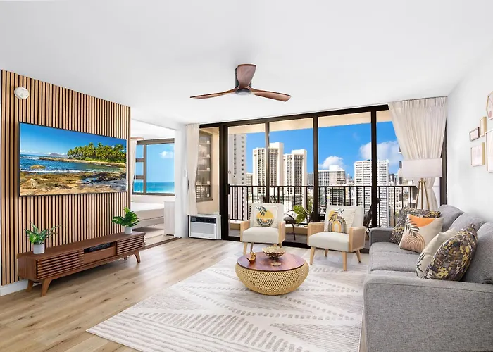 The 1-room Waikiki Banyan Fabulous Ocean View Condo With Free Parking is located 7 minutes on foot from Statue of Duke Kahanamoku and offers a cash machine and a lift. If you feel like visiting the surroundings, check out Les Murakami Stadium at 2.6 km and Yoga Floats at 3.3 km distance from the apartment.